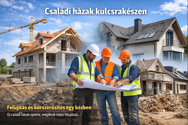 Családi házak teljes körű kivitelezése és felújítása egy kézben.
